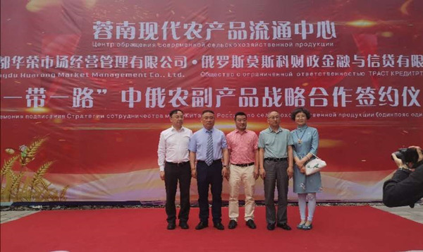 2020年5月12日,成都华荣市场经营管理有限公司与俄罗斯莫斯科财政金融与信贷有限公司在【蓉南“一带一路”沿线国家现代农副产品流通中心】项目所在地四川省成都市新津县举行了“一带一路”战略合作签约仪式。